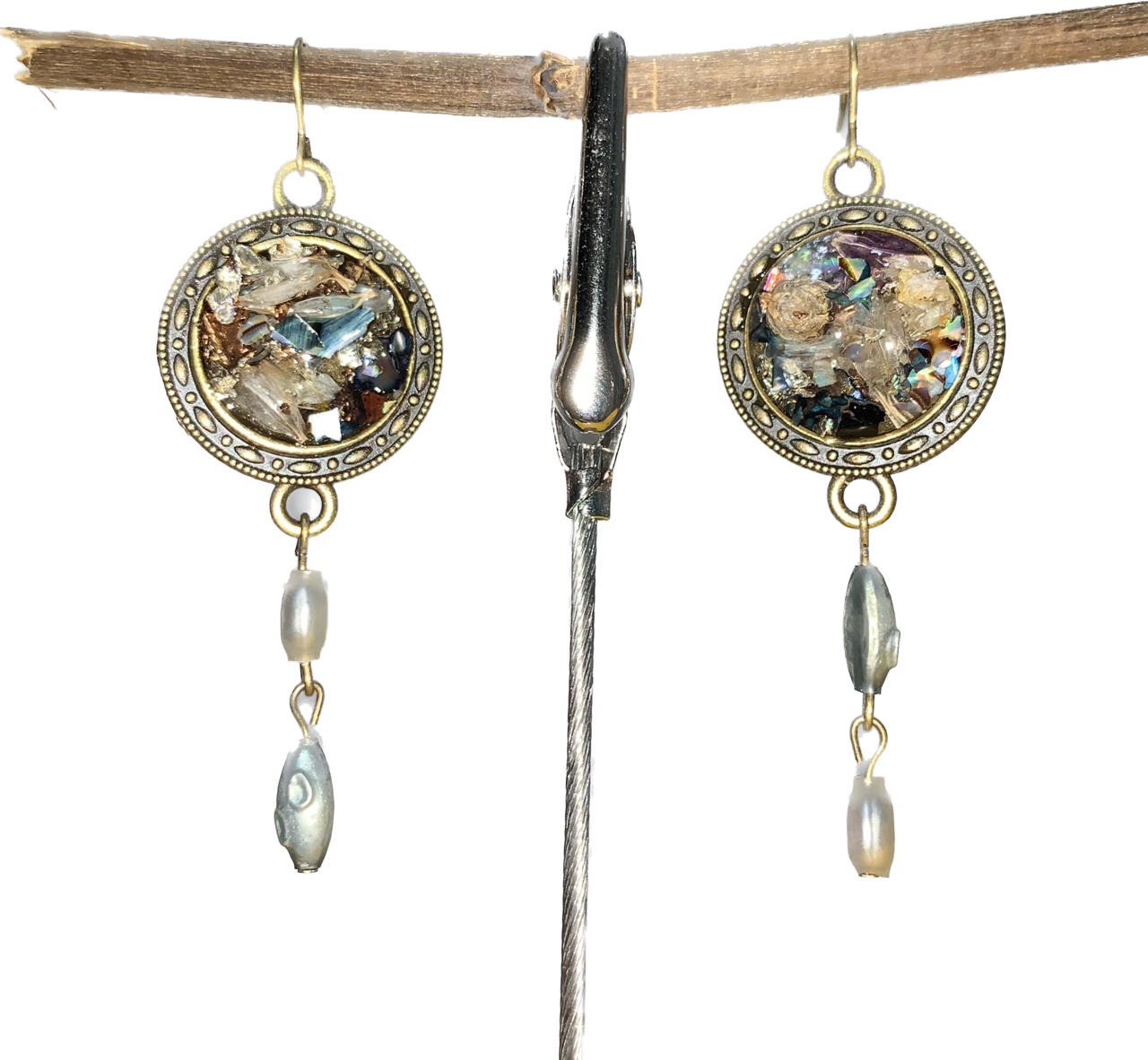 ハンドメイドアクセサリーブランド、9 ROAK SEOLVE(ナイン ローク セオルヴ)のアイテム。ドイツのアンティークビーズが、耳元で上品に揺れるピアスです。