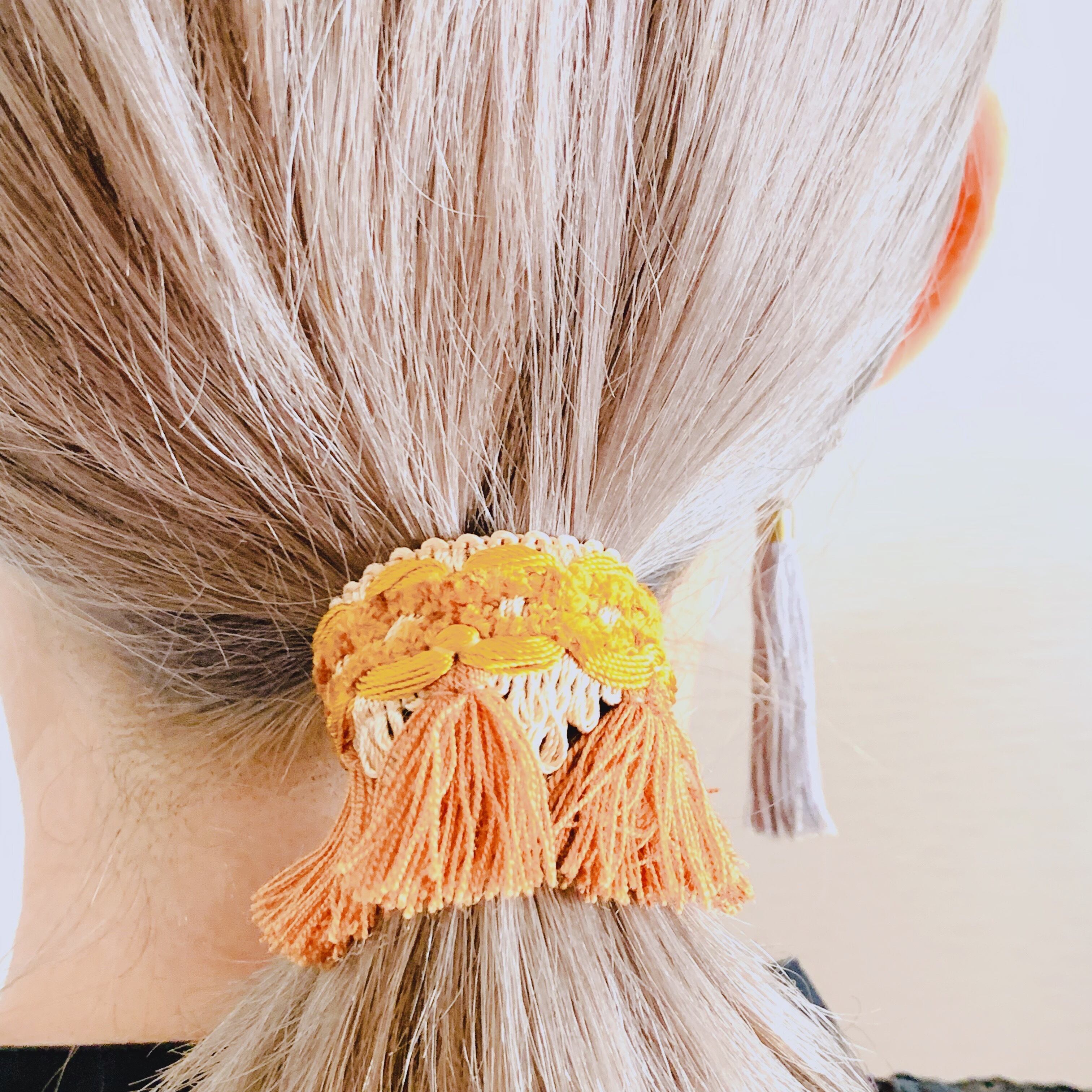髪を結んだヘアゴムにフックをひっかけ巻きつけると、簡単にお洒落なヘアアレンジが完成します。